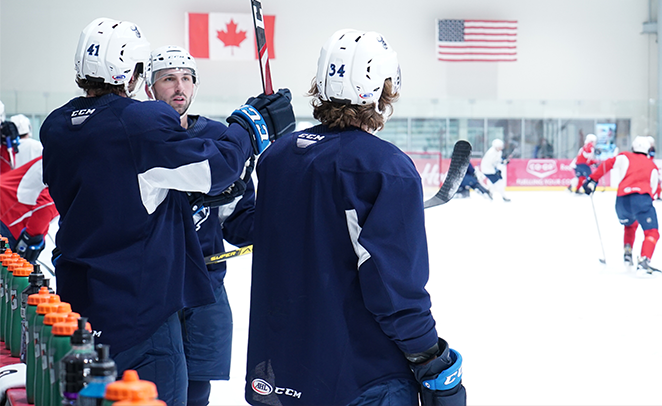The Manitoba Moose held practice at Bell MTS Iceplex Monday after splitting a two-game series with the Chicago Wolves on Friday and Saturday.