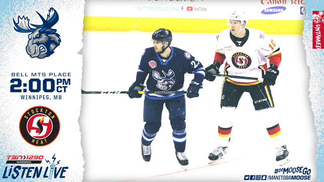 The Manitoba Moose (36-28-5-2) take on the Stockton Heat (29-28-4-2) this afternoon at Bell MTS Place to begin their final home series of the regular season. Puck drop is at 2 p.m. CT with tickets still available at moosehockey.com/tickets.  It’s Country Music Day at Bell MTS Place, featuring an in-game concert from recording artists Doc Walker.  The first 3,000 fans through the doors will also receive a Sami Niku Bobblehead.