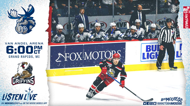 The Manitoba Moose (37-29-5-2) are fighting for a spot in the playoffs in today’s battle with the Griffins (38-25-7-4) in Grand Rapids. Catch Mitch Peacock and the pre-game show starting 15 minutes before puck drop, at 5:45 p.m. CT on moosehockey.com/listenlive/, the Moose App, and streamed live on AHLTV.