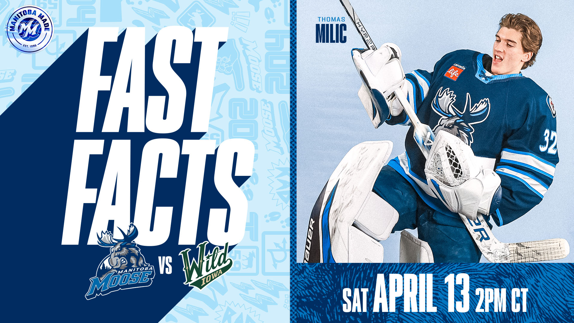 The Manitoba Moose host the Iowa Wild this afternoon (2 p.m.) as the Moose continue their quest toward clinching a spot in the Calder Cup Playoffs. Manitoba comes in having won a pair of games in extra time against Chicago to the tune of a 5-4 shootout victory and a 3-2 overtime win. Ville Heinola scored the overtime winner on Sunday to complete a late comeback started by C.J. Suess with 53 seconds left in regulation.