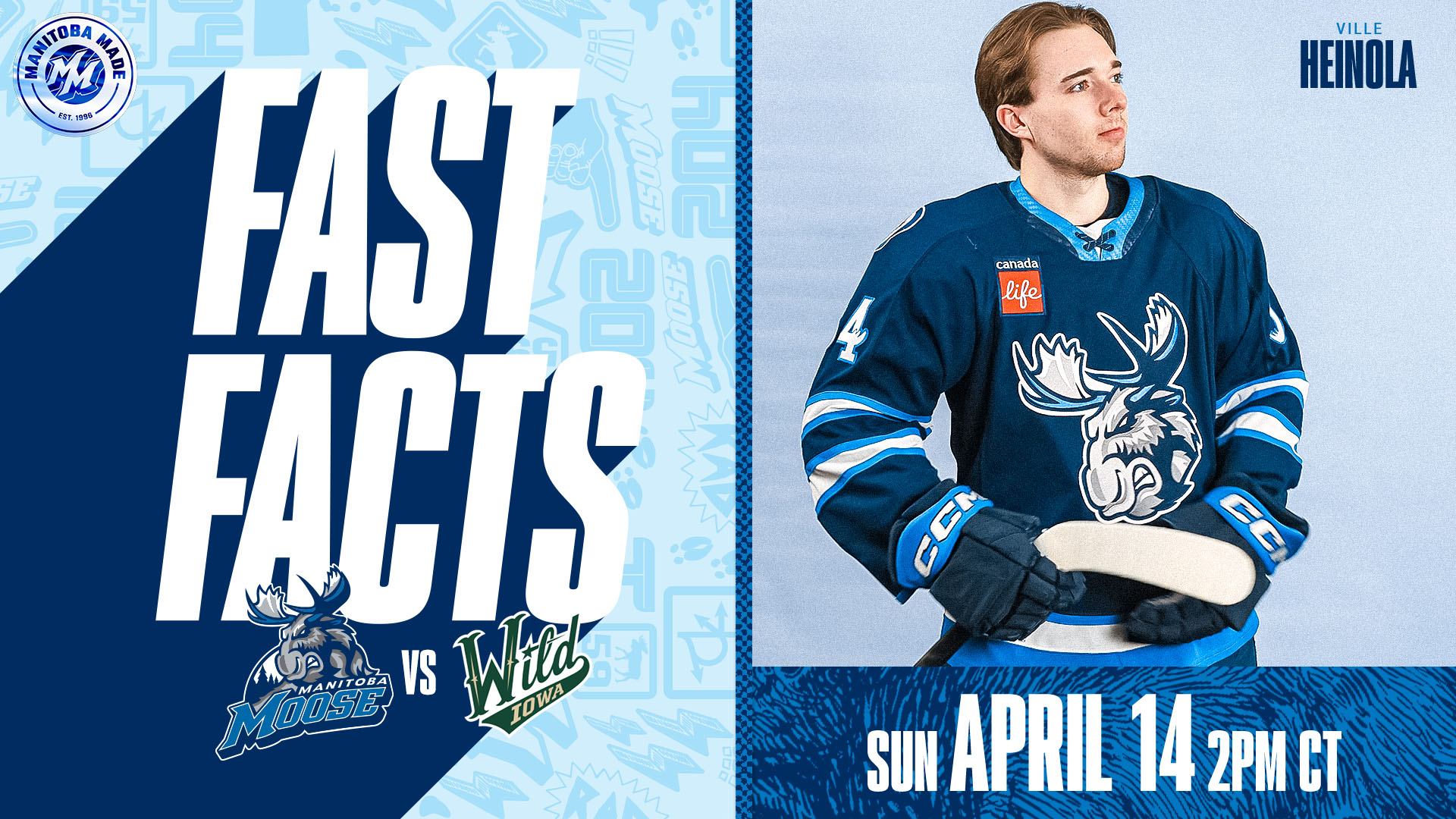 The Manitoba Moose conclude their regular season home schedule this afternoon (2 p.m.) against the Iowa Wild. The Moose scored a 7-4 win over the Wild yesterday. Kristian Reichel led the way with his first AHL hat-trick and four-point game. Jeffrey Viel (2G, 1A) and Kyle Capobianco (3A) each recorded three points in the win.