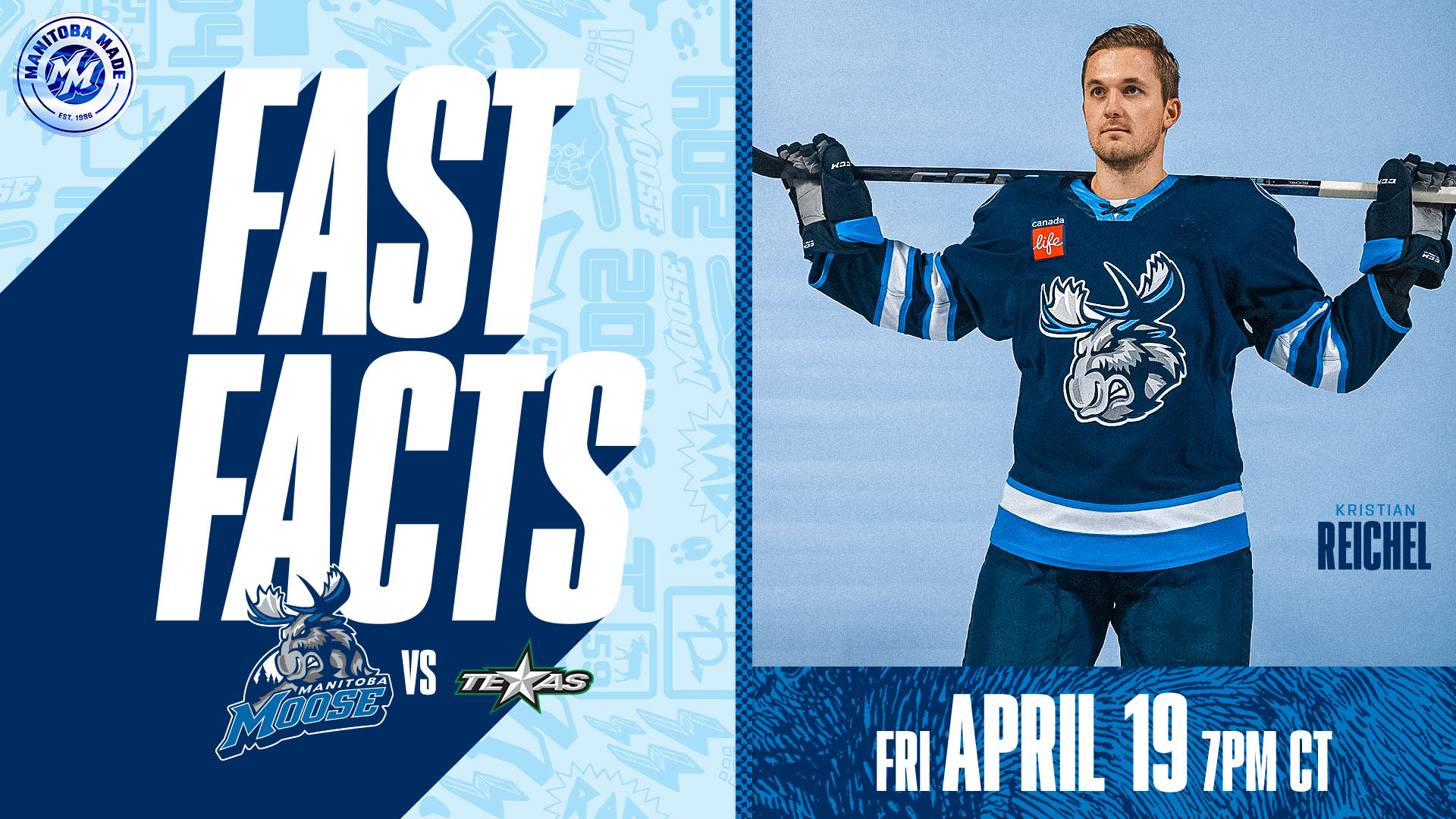 The Manitoba Moose and Texas Stars play the first game of a playoff preview this evening (7 p.m. CT). The two teams square off in a pair of contests to wrap up the regular season. Manitoba is coming off a 6-4 loss to Milwaukee on Wednesday. Parker Ford (2G) and Brad Lambert (2A) each had multi-point efforts. The Stars previously played on Saturday, garnering an overtime win in San Jose. Coverage of tonight’s game on CJOB.com/sports, the Winnipeg Jets App and AHLTV.