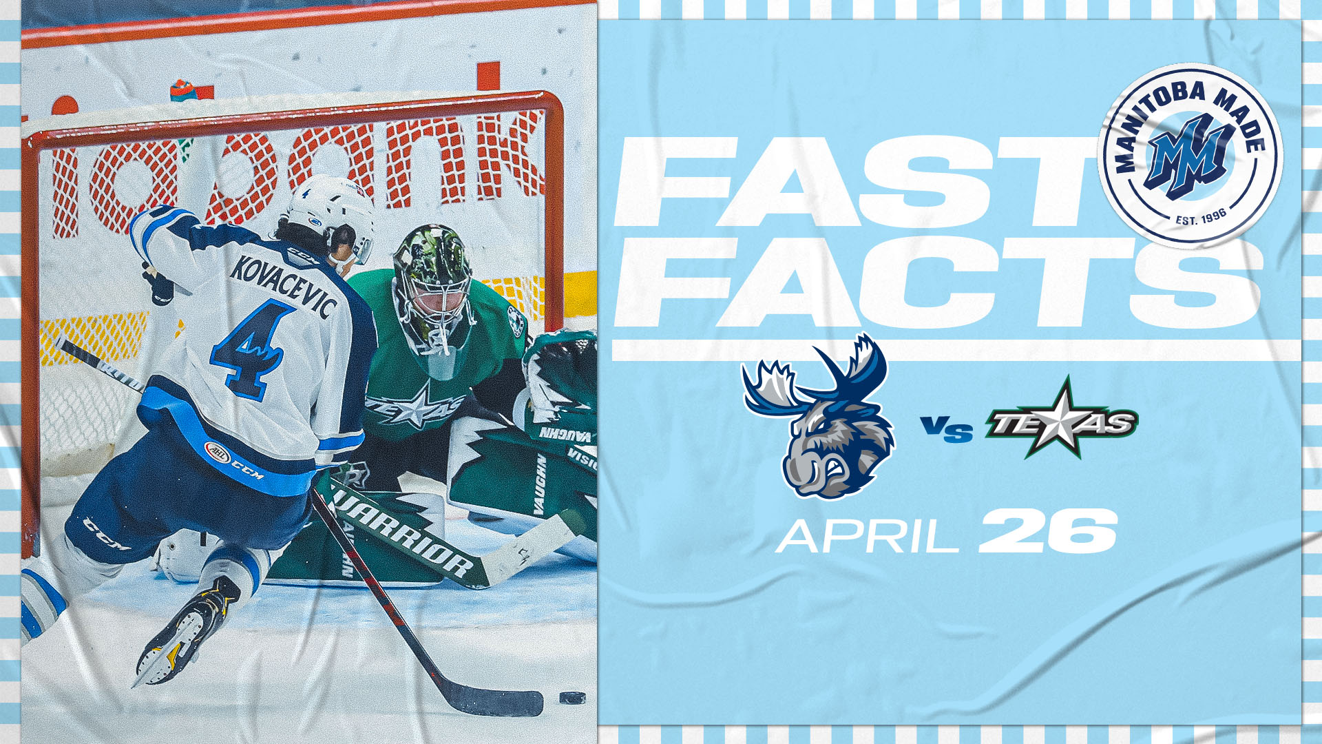 The Moose open the final week of the regular season this evening at Canada Life Centre. Tonight's matchup is one of three rescheduled games this week to wrap up the campaign. The Texas Stars are in town for their final game of the regular season. While the Moose have cinched up second place in the division and home ice advantage in the Central Division Semi-Finals, the Stars are fighting for the final spot in the divisional playoffs. Texas currently holds the fifth and final spot and can clinch with a win tonight. Tickets for tonight's 7 p.m. CT game in downtown Winnipeg are available at MooseHockey.com/TICKETS. Coverage on CJOB.com/sports, AHLTV and the Manitoba Moose App begins at 6:45 p.m. CT.