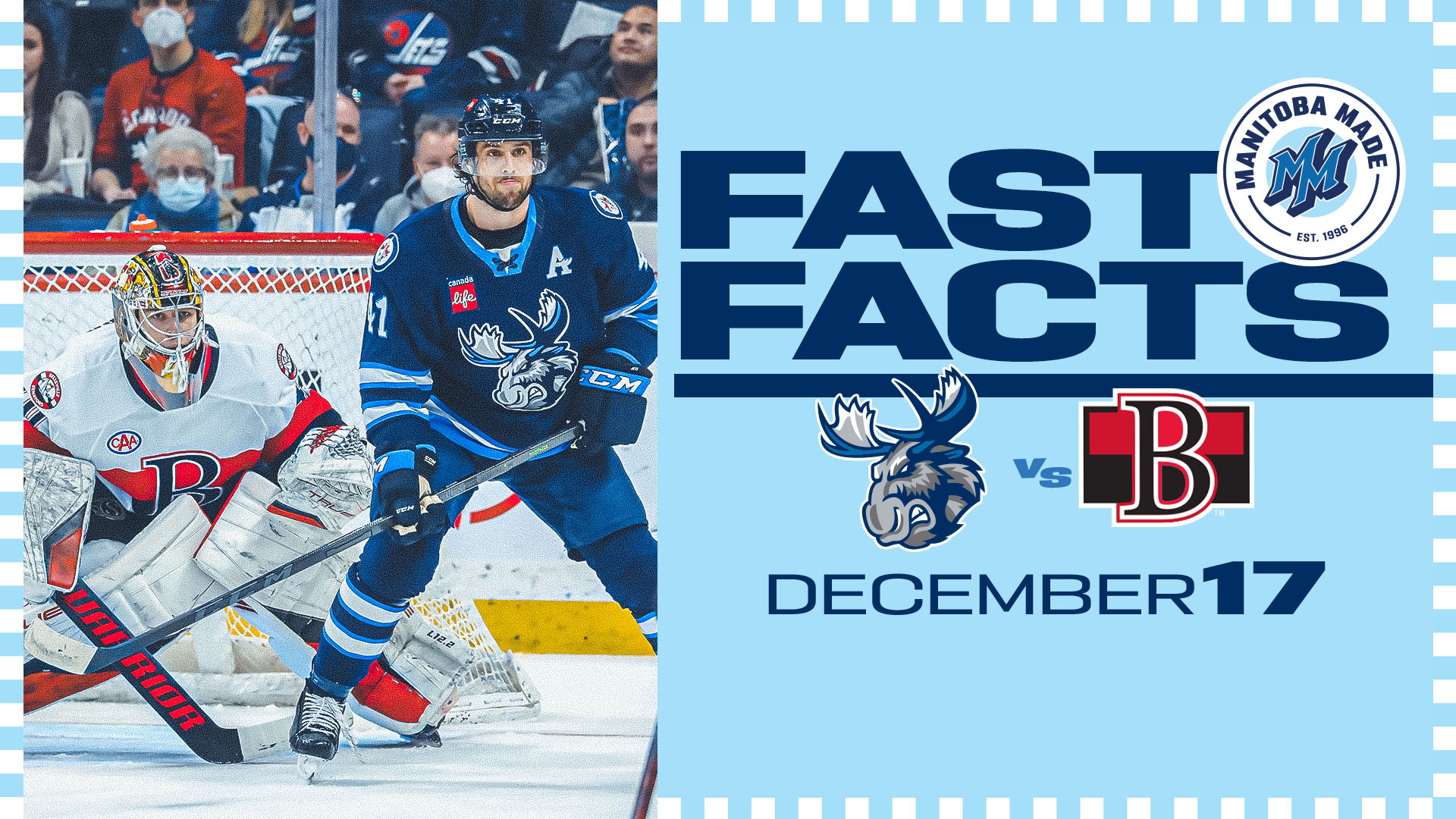 The Manitoba Moose return to Canada Life Centre for a brief, weekend stint on home ice. The team is back in Winnipeg following a 2-2-0-0 road swing through Western Canada. The club welcomes some more Canadian-based competition to town today, hosting the Belleville Senators. Today’s game is the Teddy Bear Toss, presented by Booster Juice, in support of the Christmas Cheer Board. Fans are encouraged to bring new plush toys to the game to throw on the ice in the first intermission. A limited amount will also be available for purchase on the concourse with a donation to the Christmas Cheer Board. Tickets for today’s 2 p.m. contest are available at MooseHockey.com/TICKETS.
