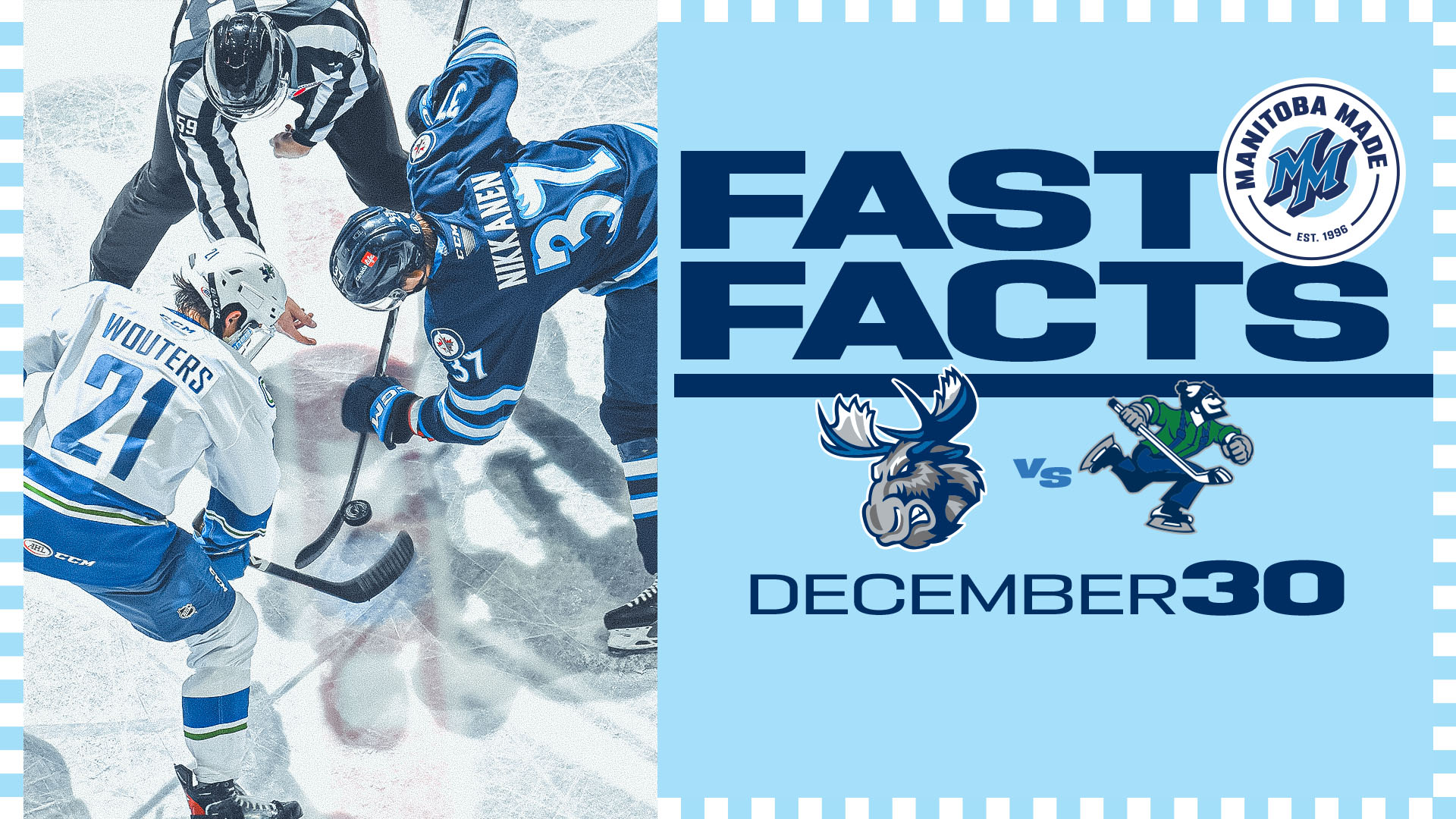 The Manitoba Moose return from the Holiday Break hoping to extend their four-game winning streak. The Moose will have to cool off the Abbotsford Canucks who come into the contest with wins in eight of their past 10 games. It’s the Canucks’ first visit to Canada Life Centre split their first two matchups of the season in Abbotsford.