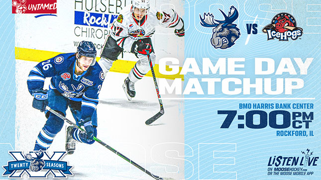 The Moose and IceHogs drop the puck at 7 p.m. CT. Tune in on moosehockey.com/listenlive, the Moose App or AHLTV starting with the pre-game show at 6:45.