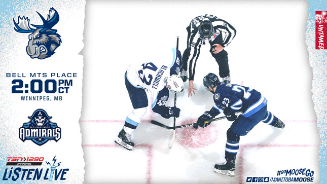 The Manitoba Moose (24-21-3-2) are set to take on the Milwaukee Admirals (22-20-9-1) this afternoon (2 p.m. CT) at Bell MTS Place. Today’s game is the club’s Follow Your Dreams Day, where they’ll celebrate Indigenous youth in sports and culture. For tickets, visit moosehockey.com/tickets/.