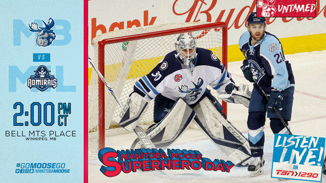 Nah, nah, nah, nah, nah, nah, nah, nah MOOSE GAME! It’s Superhero Day at Bell MTS Place and the Moose (32-13-4-3) hit the ice to take on the Milwaukee Admirals (25-21-4-1) at 2 p.m. (CT). It’s going to be a terrific, family friendly atmosphere with Batman and Wonder Woman in attendance. You can still get tickets at moosehockey.com/tickets/, or tune in to TSN1290 at 1:45 p.m. (CT) for Steve Schuster and the pregame show.