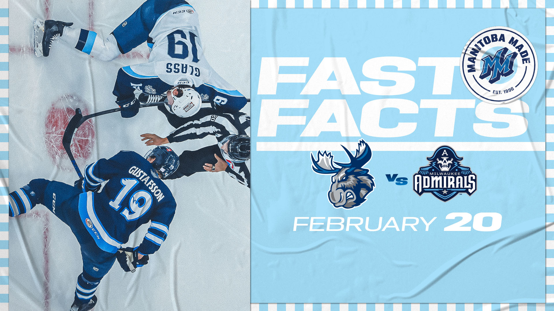 The Moose face the Milwaukee Admirals at Canada Life Centre to kick off a nine-game stand running from Feb. 20 to Mar. 12. It’s the longest home stand of the season for the Moose sees the club take on Milwaukee, Chicago, Rockford and Belleville. Manitoba is a sparkling 14-3-0-1 at home this season and are led by a pair of defencemen. Leon Gawanke, who paces the team in scoring with 23 points and has 12 points (2G, 10A) at home. Not to be outdone is Gawanke’s defence partner, Declan Chisholm, who has 12 of his 17 points, including five goals, at Canada Life Centre. Greg Meireles (1G, 9A) and Cole Maier (4G 6A) lead the forward ranks in points on home ice.