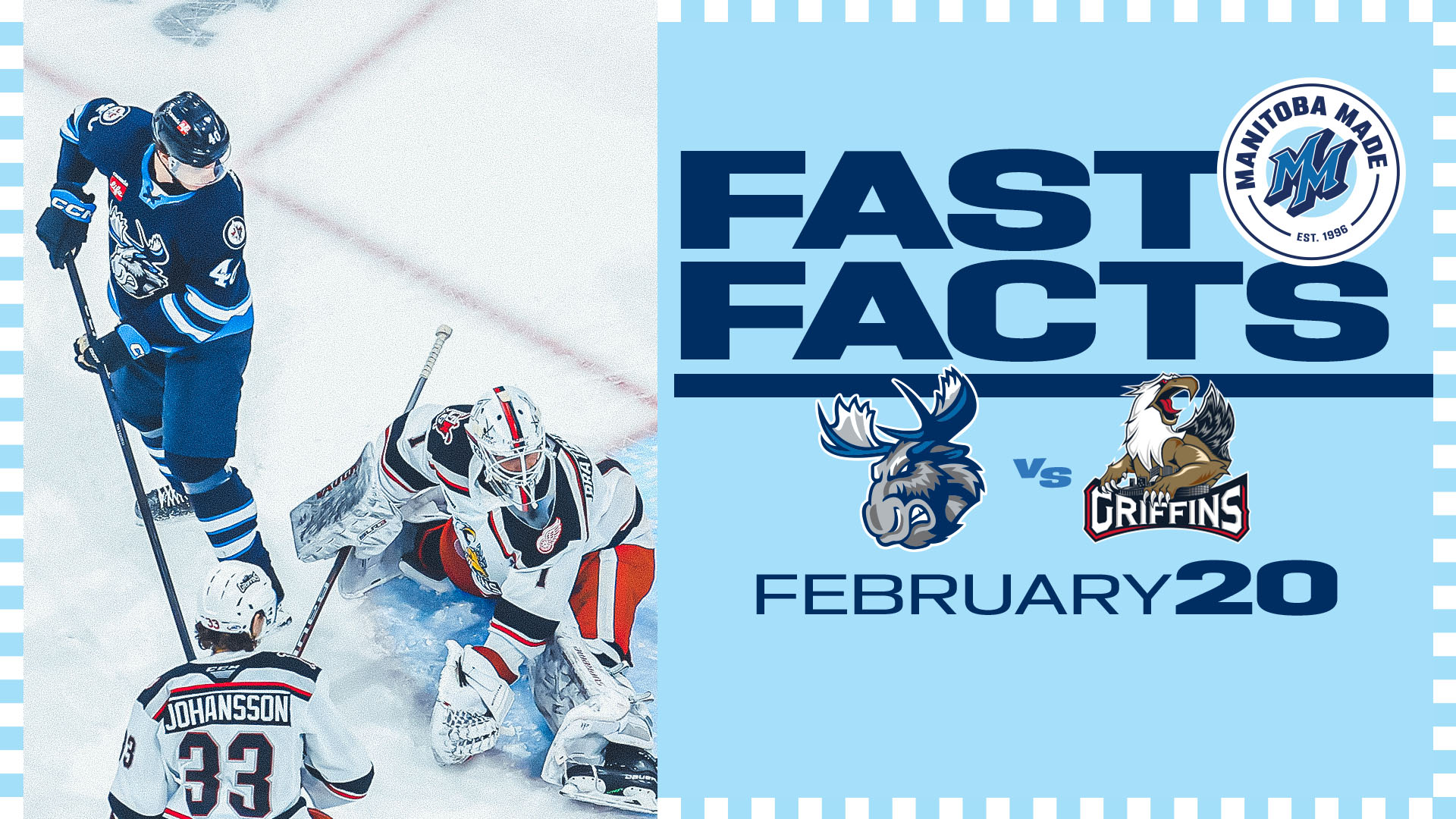1-3-0-0 mark in those contests and has suited up in front of an average crowd of 7401. The contest against the Griffins also marks the first time the Moose face off against a team other than the Admirals in their Louis Riel Day matinee.