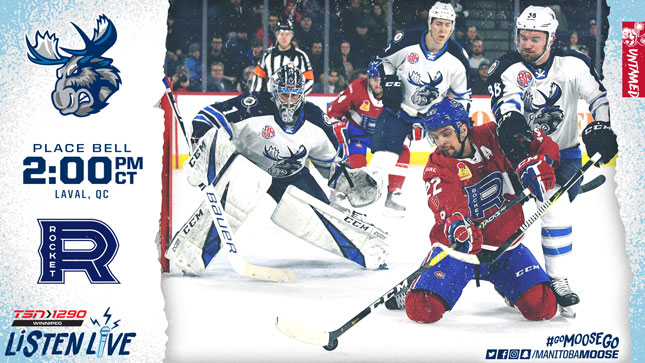 The Manitoba Moose (25-24-3-2) are looking for revenge this afternoon, against the Laval Rocket (22-24-5-4). Today’s 2 p.m. CT game will be available on TSN 1290, moosehockey.com/listenlive/, the Moose App, and streaming live on AHLTV.