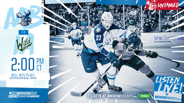 The Manitoba Moose (25-7-3-2) renew their rivalry with the Iowa Wild (16-12-6-3) this afternoon at 2pm (CST). This weekend’s matchups will be games four and five of the season series between Manitoba and Iowa. So far, the Moose have won two of three meetings, after narrowly edging the Wild 4-3 last week (Jan. 6) in Iowa. Michael Spacek led the charge in that game, notching both an assist and the game-winning goal. For tickets to today’s action, go to moosehockey.com/tickets/.