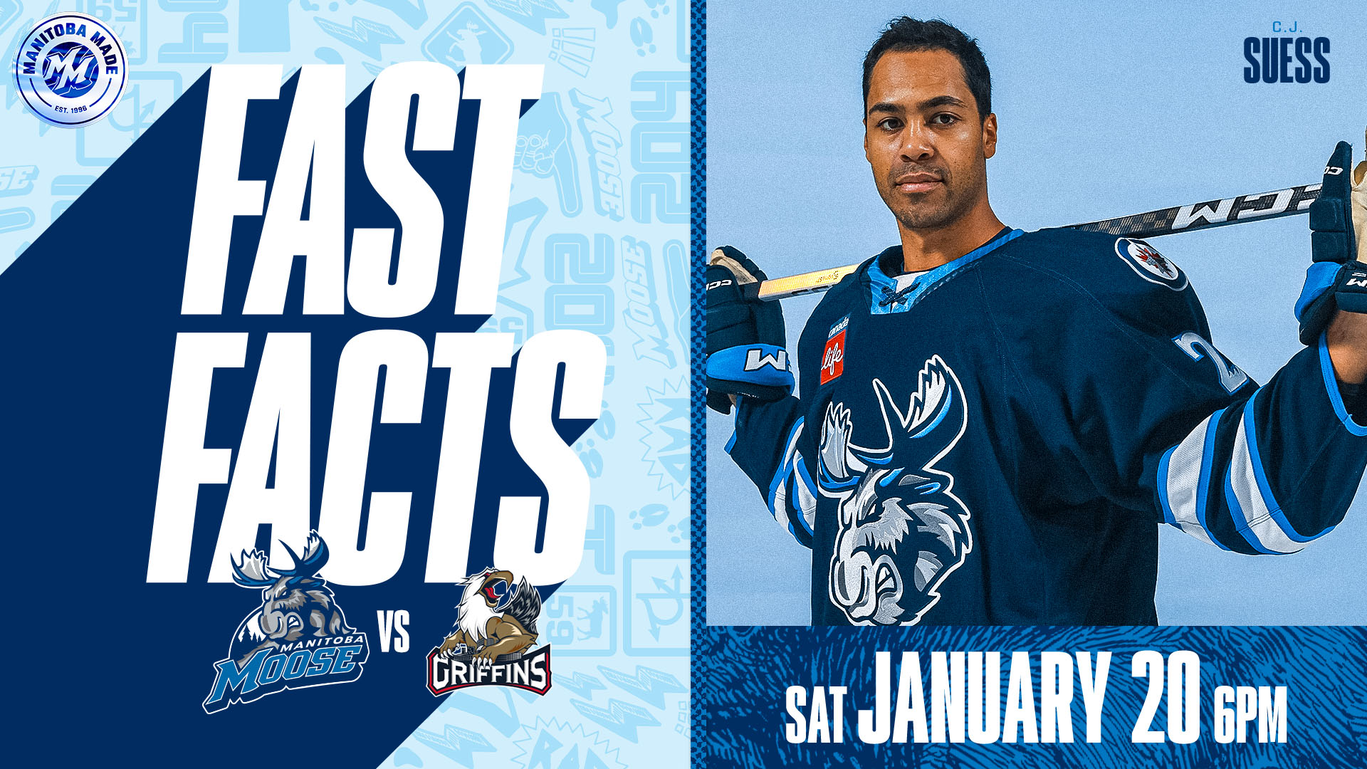 C.J. Suess scored Manitoba’s third goal in yesterday’s contest. The forward is currently riding a three-game point streak and has tallied three points (2G, 1A) over that span. Suess ranks eighth among Moose forwards in points and has tallied nine (5G, 4A) in 31 contests. The forward also co-leads Manitoba with three game-winning goals.
