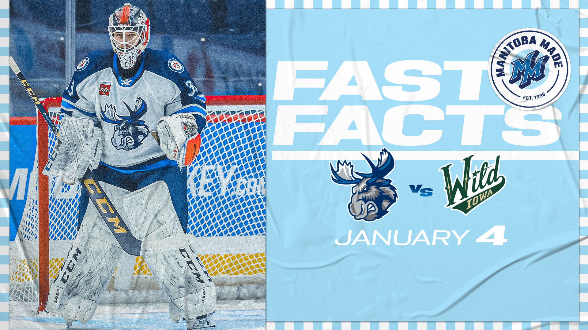 Goaltender Evan Cormier signed a professional tryout with the Moose prior to Sunday’s game and made the most of the opportunity. Cormier turned away 29 of 30 Iowa shots on the way to his 11th career AHL victory. The Bowmanville, Ont. product has 38 career AHL games to his name with an 11-21-4 record, supported by a 3.26 goals-against average and a .894 save percentage. This season, Cormier holds a 10-2-1 mark with a 2.58 goals-against average and a .902 save percentage for the ECHL’s Newfoundland Growlers.