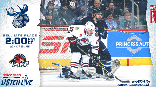 The Manitoba Moose (28-26-3-2) take on the Rockford IceHogs (27-24-3-6) this afternoon at 2 p.m. CT in a rematch of last night’s 3-1 Moose win. Tickets for today’s game are available at moosehockey.com/tickets.
