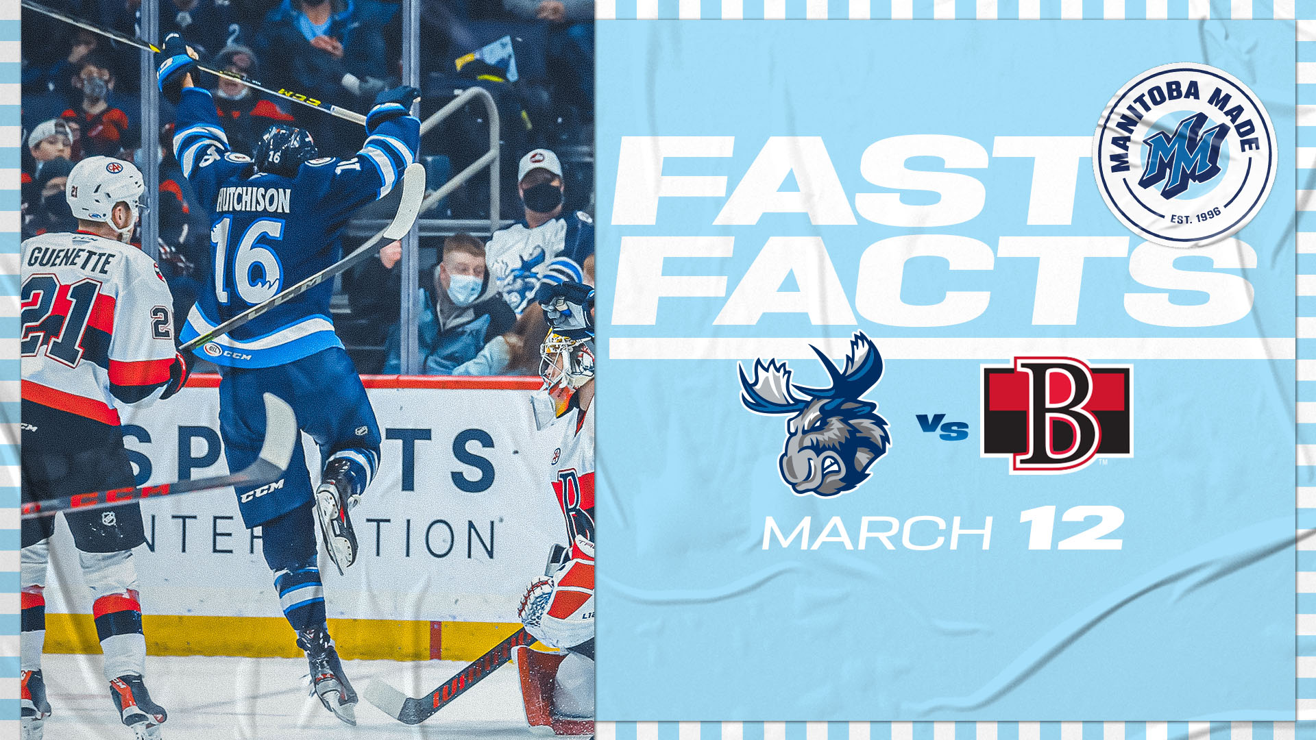 Forward Nick Hutchison nabbed his first AHL goal yesterday evening. Hutchison opened the scoring 8:27 into the contest, finishing off a rebound in front of Mads Sogaard. The Hicksville, N.Y. product’s first tally comes 13 games into his career, and in his eighth turn with the Moose. Hutchison picked up his first AHL point with an assist on March 3 against Rockford, giving him two points (1G, 1A) in his past two games. The centreman joined Manitoba on a professional tryout from the Wheeling Nailers where he recorded 42 points (16G, 26A) in 31 games.