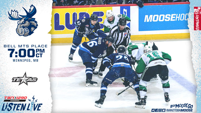 The Manitoba Moose (29-26-3-2) start a two-game series against the Texas Stars (30-25-4-3), tonight at 7 p.m. CT. Tickets for the crucial Central Division matchup are available at moosehockey.com/tickets.