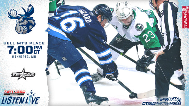 The Manitoba Moose (30-26-3-2) are just two points behind the Texas Stars (30-26-4-3) for the fourth and final spot in the Central Division playoff picture. They’ll get a chance at making up those two points tonight at 7 p.m. CT in a rematch of Wednesday’s win. Tickets are available at moosehockey.com/tickets.