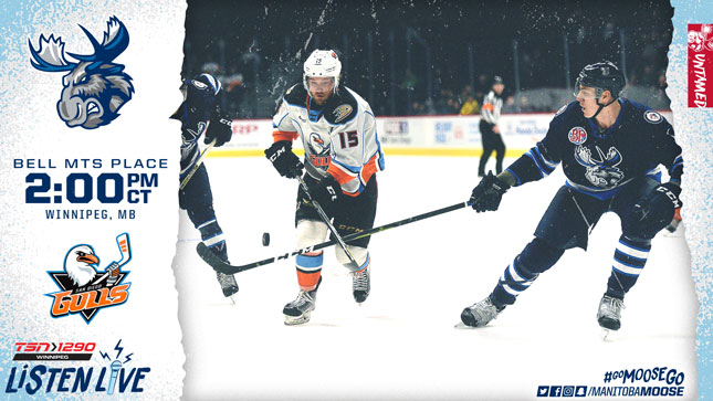 Tune in to Mitch Peacock and the pre-game show at 1:45 p.m. CT on TSN 1290, moosehockey.com/listenlive/, the Moose App, and streamed live on AHLTV. Looking forward, the Moose and Diego Gulls do it again Tuesday night at 7 p.m. For tickets, visit moosehockey.com/tickets.
