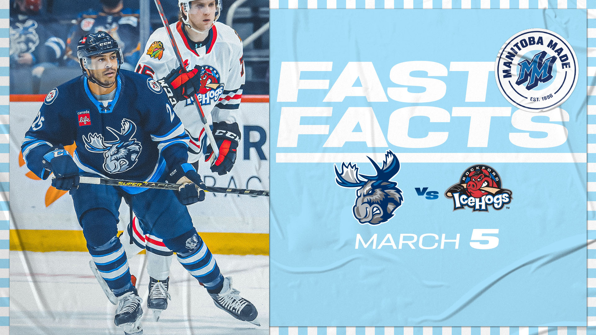 The Moose and IceHogs battle for the second time this week today at Canada Life Centre. Manitoba rolled by Rockford by a 7-2 count in the teams’ previous meeting on Thursday. Today is Autism Acceptance Day at Canada Life Centre. The Moose will wear special edition jerseys which will be auctioned at the game and online in support of the St.Amant Foundation. Click here more information on the Autism Acceptance campaign and today’s game. Tickets for today’s 2 p.m. matchup are available at MooseHockey.com/TICKETS. Coverage of today’s game gets started at 1:45 p.m. CT on CJOB.com/sports, AHLTV and the Manitoba Moose App.