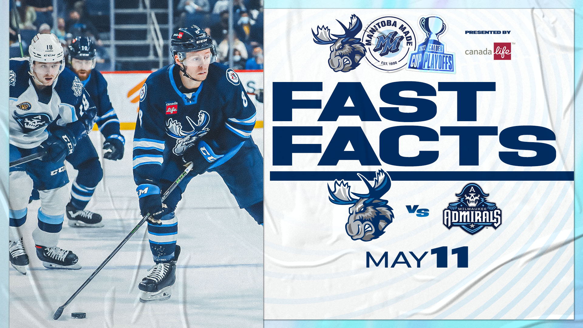 The Manitoba Moose face their first elimination game of the 2022 Calder Cup Playoffs tonight. Manitoba returns home following 3-2 and 2-1 losses despite outshooting the Milwaukee Admirals by a combined 86-37 the first two games of the best-of-five series. Admirals netminder Devin Cooley was the story of the first two games, stopping 83 of the 86 shots fired his way. Meanwhile, defenceman Declan Chisholm factored on every Moose goal with three points (1G, 2A). Tickets for tonight’s Game 3 matchup at 7 p.m. are available at MooseHockey.com/TICKETS. Broadcast coverage of tonight’s action begins at 6:30 p.m. on 680 CJOB, AHLTV and the Manitoba Moose App. It will also be broadcast on TSN3 and TSN.ca starting at 7 p.m.