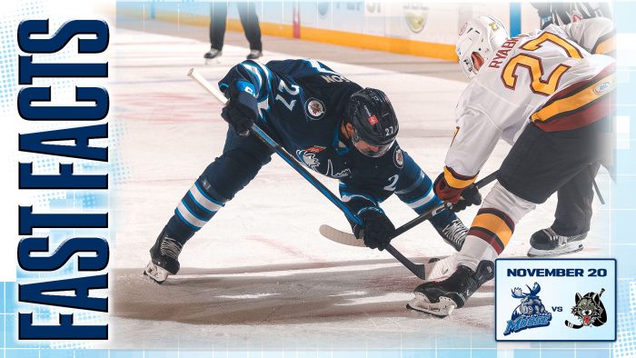 The Manitoba Moose (7-6-2-0) clash with the Chicago Wolves (7-4-3-0) for the second time this season on Thursday evening. The Moose rolled to a 5-2 win, their fourth consecutive victory, over the Rockford IceHogs on Nov. 15. Walker Duehr registered three points (1G, 2A). The Wolves earned a point in a 3-2 overtime loss to the Cleveland Monsters on Nov. 16. Coverage begins at 6:45 p.m. CT on cjob.com, the Winnipeg Jets App or AHLTV on FloHockey. Action at Canada Life Centre begins at 7 p.m. CT. Tickets for this evening’s game are available at moosehockey.com/tickets.