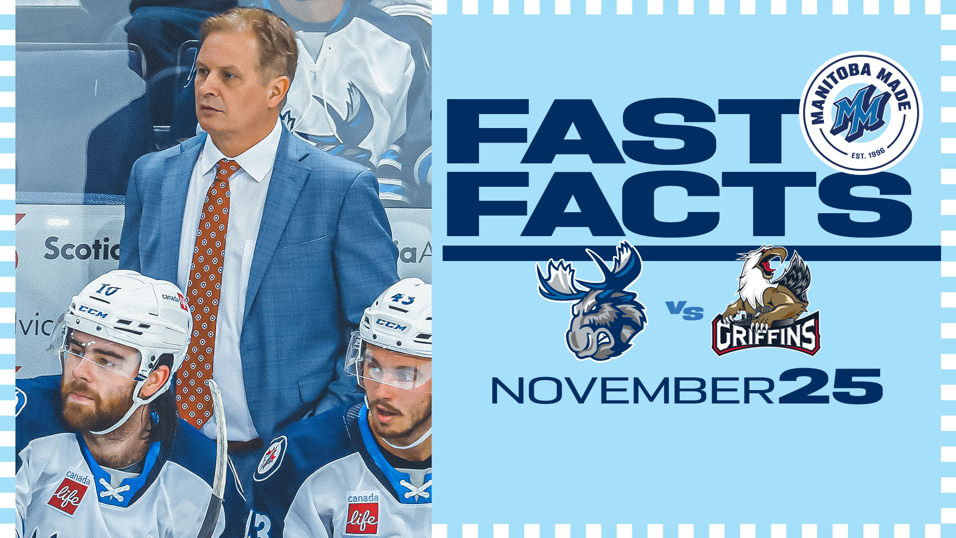 The Manitoba Moose take on the Grand Rapids for the first time since Jan. 15, 2022 as the clubs match up for a pair of games this weekend. The Moose are coming off a 5-1 loss in Milwaukee on Tuesday and sit 1-1-1-0 through three games of a five-game road swing. Tune in to the action with pre-game coverage beginning at 5:45 p.m. CT on cjob.com/sports, the Winnipeg Jets App and AHLTV. Puck drop is slated for 6 p.m. CT.