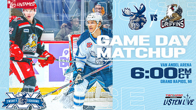 The Moose and Griffins drop the puck at 6 p.m. CT tonight. Coverage gets going on moosehockey.com/listenlive and AHLTV starting at 5 p.m. with Moose Weekly hosted by Austin Siragusa. The pre-game show starts a 5:45 p.m. TSN 1290 will join the action in progress.