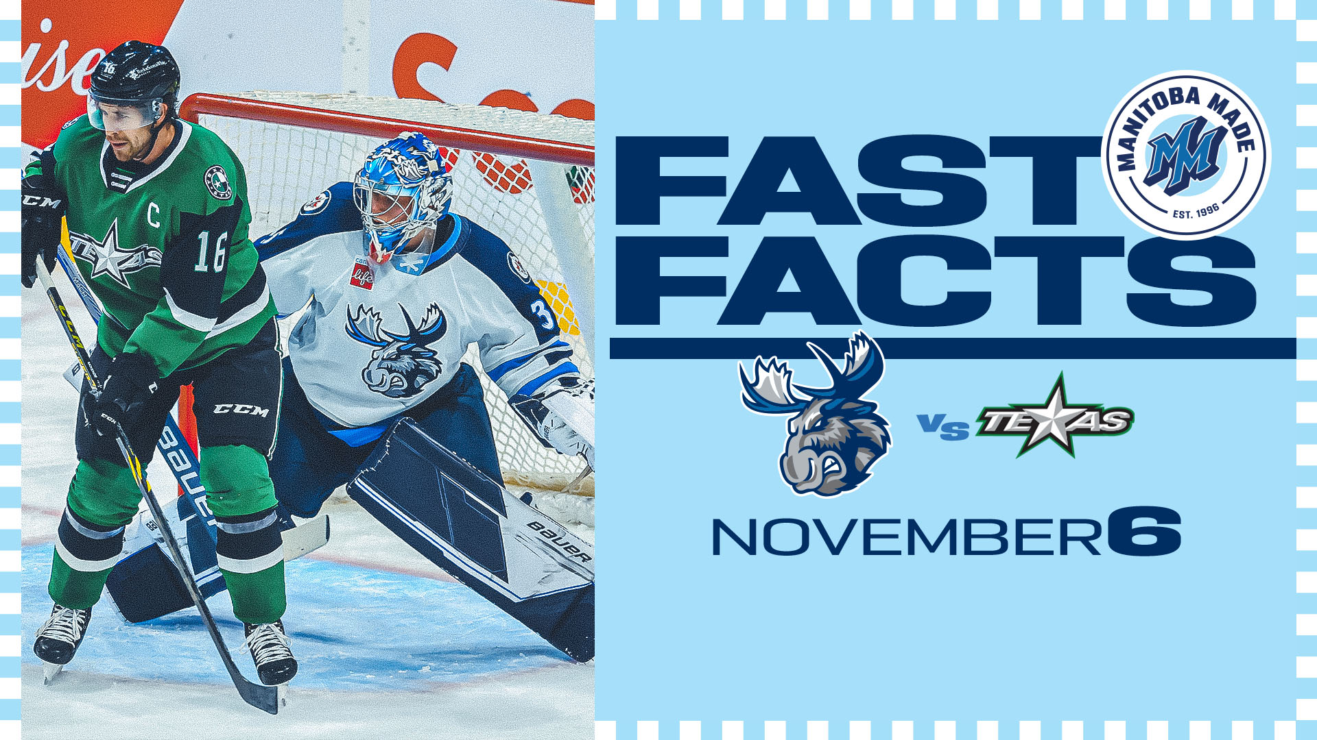 The Manitoba Moose are in search of a split today when they host the Texas Stars at Canada Life Centre. The visitors scored a 4-1 victory on Friday night, riding a three-goal first period to the win. Anton Khudobin made 36 saves for the Stars. Manitoba hasn’t lost back-to-back games yet this season and will try to keep it that way. Tickets for today’s 2 p.m. game are available at MooseHockey.com/TICKETS, the first 3,000 fans in attendance will receive a team poster. Don’t forget all Ticket Members get access to an exclusive, post-game, full-team autograph session following the game.