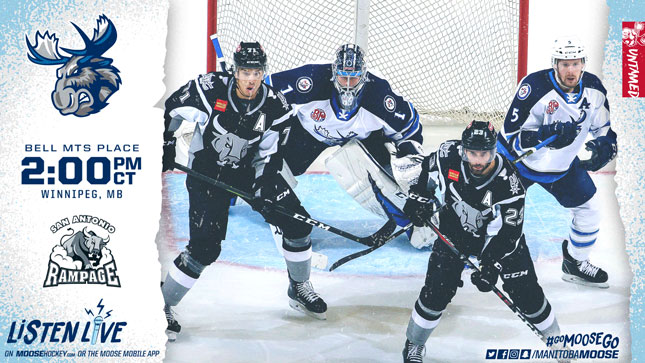The Manitoba Moose (2-3-0-0) have a chance to wrap up their first home stand of the season in style, seeking their third win in four games. They take on the San Antonio Rampage (1-4-0-0) this afternoon at Bell MTS Place. Today is also Manitoba Moose Pride Day so get your tickets while they last at moosehockey.com/tickets/.