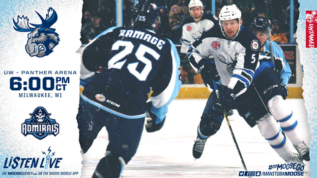 The Manitoba Moose (3-3-0-0) are back on the road and starting a three-game road stretch tonight against the Central Division leading Milwaukee Admirals (7-1-1-0). The puck drops at 6 p.m. CT, and you can tune in on moosehockey.com/listenlive/ or the Moose App.