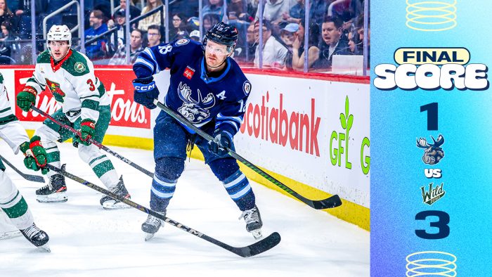 The Wild opened the second by extending their advantage to 3-0. Toporowski sent the puck over to Bankier who slipped around a defender before snapping his second of the game past Milic. The Moose upped the physical pressure in the frame, but couldn’t find the back of the net on nine shots. Milic made nine saves as Manitoba went to the third trailing by a trio.