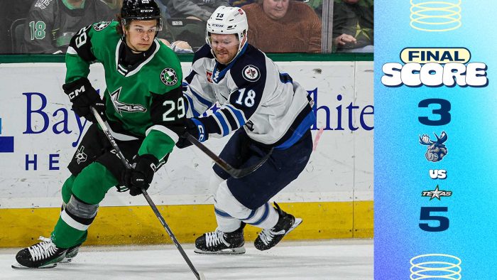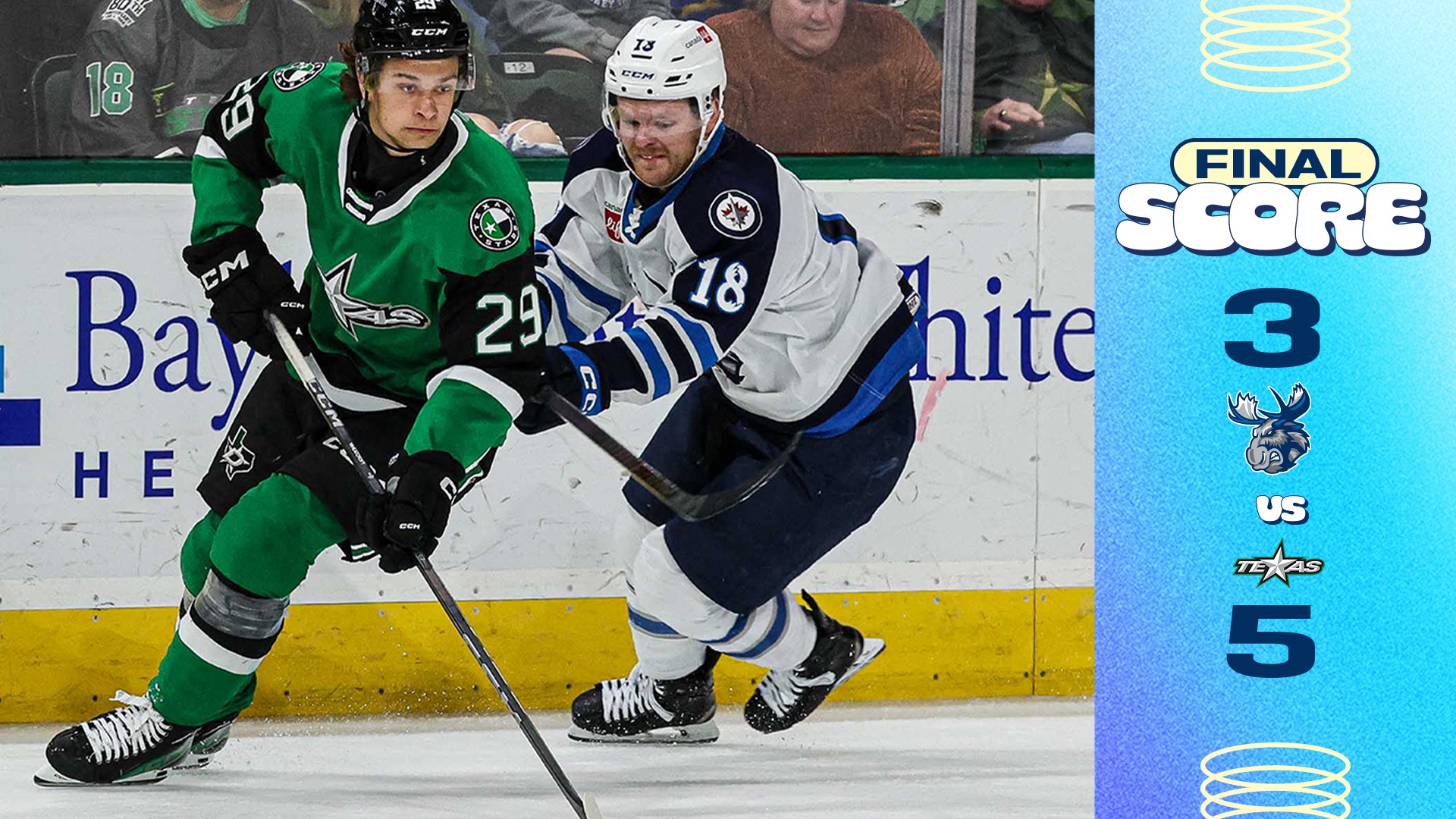 The Manitoba Moose (24-41-3-3) began the final weekend of the regular season with a 5-3 loss to the Texas Stars (43-25-3-0) on Friday night. The Moose were coming off a 3-2 overtime win against Iowa the previous Saturday.