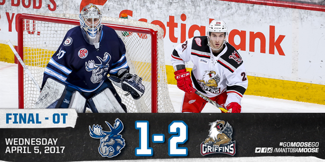 The third period saw the scoring chances ease back from the second. Both teams had one powerplay opportunity, but neither cashed in on their chance. Phillips and Coreau locked things down between the pipes making nine and seven saves respectively to send the game past 60 minutes. The Moose had the first great chance of overtime as Chase De Leo wheeled into the slot, but rang his shot off the post. Grand Rapids ended the game moments later as Axel Holmstrom struck 2:11 into overtime to send the Griffins home with a 2-1 victory.