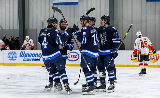The Manitoba Moose (12-11-2-0) earned their fourth-straight victory with a 5-2 win against the Stockton Heat (10-15-1-0) on Thursday night at Bell MTS Iceplex. Just 45 seconds into the contest, Johnathan Kovacevic blasted a shot from the blueline that found its way through traffic and behind Stockton's netminder Tyler Parsons which gave the Moose an early 1-0 advantage. Manitoba held the offensive edge during the first period and outshot the Heat by a 12-4 count.