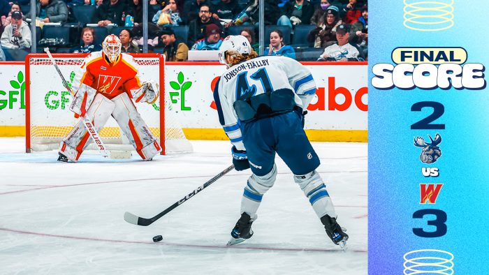 Both clubs were held at 0-0 through the middle frame. Manitoba’s penalty kill went to work during the second period, successfully killing off four Calgary power plays. The Moose outshot the Wranglers 8-7 in the period, with Milic and Cooley making some huge saves for both clubs to keep their opponents off the scoresheet once again.