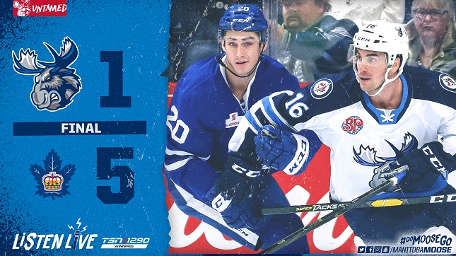 The Manitoba Moose (11-14-2-0) fell 5-1 to the Toronto Marlies (12-10-3-2) on Saturday night at Bell MTS Place. Moose newcomer Brent Pedersen made an impact early, laying out a Marlies defender on his first shift. The fast pace and physicality from Manitoba carried through the first half of the period, but they couldn't capitalize with a goal. Toronto's first power play opportunity turned into a 5-on-3 with 6:12 left in the frame. The visitors cashed in with back-to-back power play goals, 13 seconds apart, as Trevor Moore and Chris Mueller did the damage.