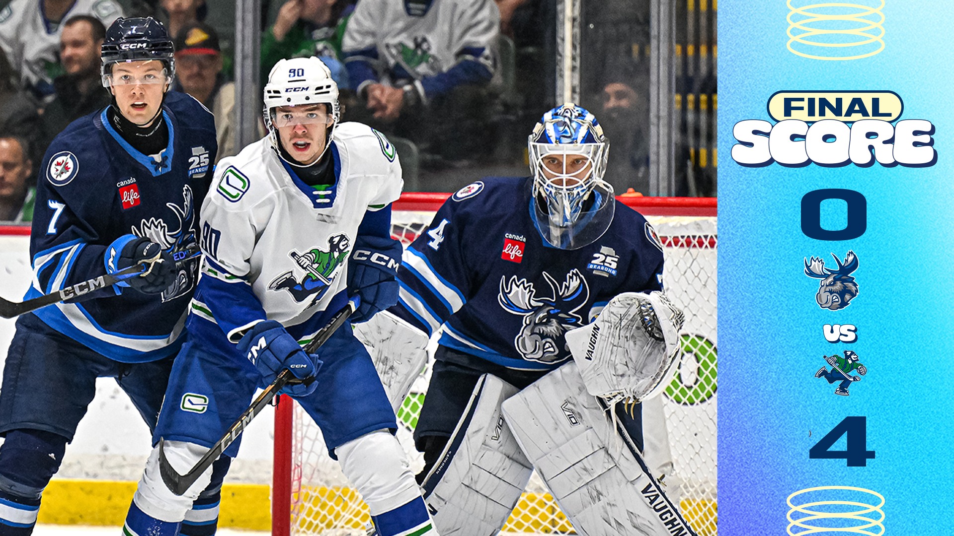 The Manitoba Moose (6-16-0-1) fell 4-0 to the Abbotsford Canucks (14-10-0-1) on Sunday night. The Moose were coming off a 3-0 loss against the Canucks the night prior.