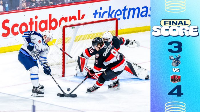 The Manitoba Moose (6-12-0-1) fell 4-3 in a shootout loss to the Belleville Senators (11-4-0-4) on Saturday night. The Moose were coming off a 6-3 loss against the Senators the evening prior.