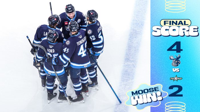 Dylan Coghlan opened the scoring for the Moose less than three minutes into the opening frame, to give the Moose an early 1-0 lead. Coghlan struck again on the power play to double Manitoba’s lead halfway through the frame. Cameron Hughes put the Stars on the board with a power play goal in the final four minutes of the period, cutting the Moose lead to 2-1. Domenic DiVincentiis made six saves on seven shots in the Manitoba net, and Remi Poirier made seven stops on nine shots in the Texas crease.