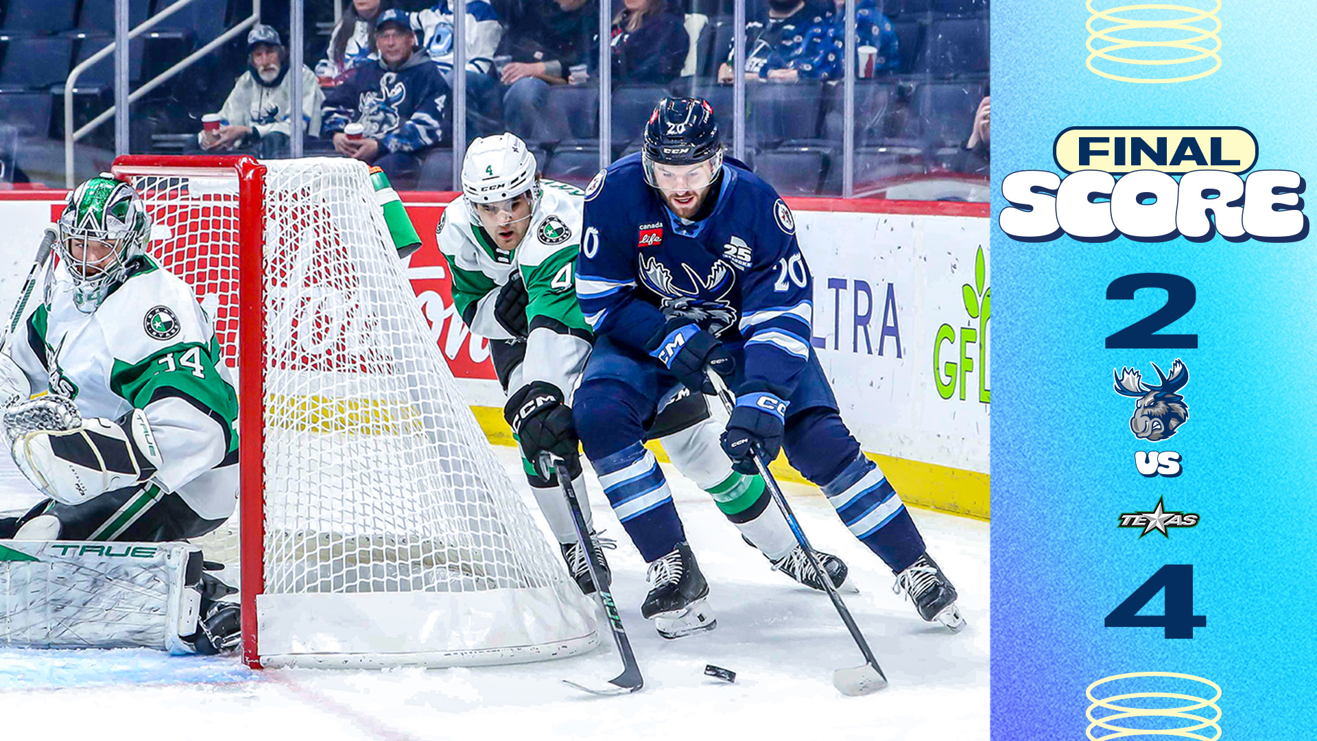 The Manitoba Moose (14-27-1-1) fell 4-2 to the Texas Stars (27-16-3-0) on Friday. The Moose were coming off a 4-2 win over the Stars on Wednesday.