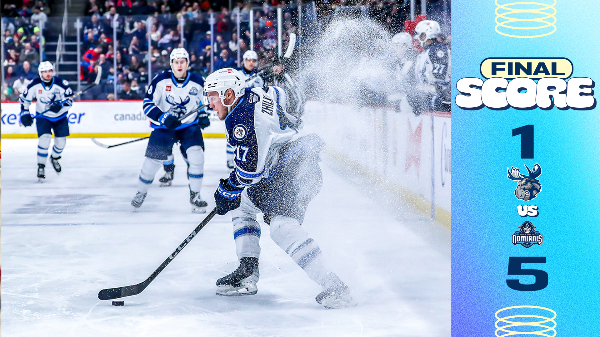 The Manitoba Moose (15-28-1-1) fell 5-1 to the Milwaukee Admirals (26-16-3-4) on Monday. The Moose were coming off a 2-1 win over the Admirals on Sunday.