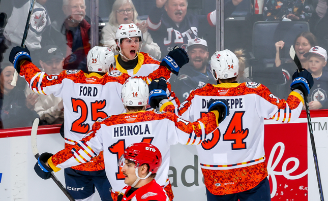 The Griffins led 16-9 on the shot clock through the first 20 minutes of action, but the Moose were the first to hit the scoresheet. Kale Clague was in the right place at the right time, jumped on a loose puck at the netfront, and slid it into the empty cage to give the Moose a 1-0 lead 15:55 into the period. Grand Rapids fought back to level with 29 seconds left until the break. Sheldon Dries' one-time effort hit a Moose stick in front and deflected through the legs of Domenic DiVincentiis, tying the game at 1-1.