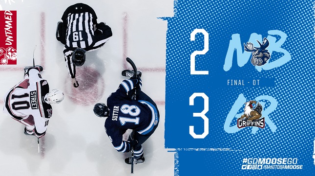 The third period had some early flow and stoppages were a rarity for the first 10 minutes as both teams worked through a chess match. The Moose weren’t able to capitalize on a late power play, but for the second time in three games, found success with Hutchinson on the bench. With time ticking away and the goaltender out for the extra attacker, Cameron Schilling ripped a shot from the point that found its way through a crowd in front to get the Moose within one with 2:37 left. Just 36 seconds later, Nic Petan deflected a Patrice Cormier pass to the back of the net to tie the contest 2-2. Overtime saw the Griffins rebound from the Moose comeback as Filip Hronek fired a shot that deflected off a stick and to the twine to give Grand Rapids the 3-2 victory.