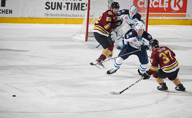With 7:26 gone in the third, Seth Griffith ripped a shot from the blueline that found the top shelf of the Wolves net to make the score 3-1. With 1:39 left in the period, Kristian Reichel capitalized on a loose puck in front of Dansk and scored to get Manitoba within one. With a minute left to play, the Wolves scored twice on Manitoba’s empty net to secure the 5-2 victory.