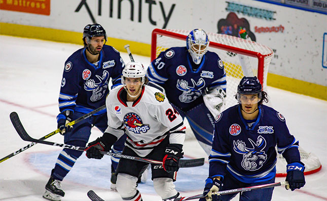 The Moose were unable to find the equalizer in the third frame. With 31 seconds remaining in the third period, Nick Moutrey found Manitoba's empty net stamping their 4-2 victory.