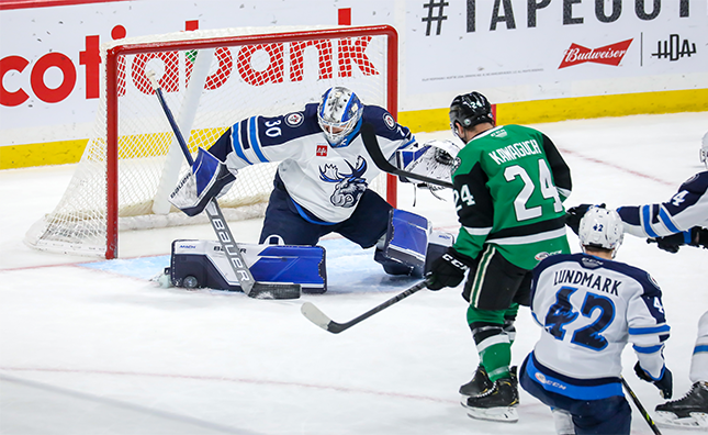 Texas opened the scoring with a power play tally in the first period. Ty Dellandrea took possession of the puck and wired a shot past netminder Mikhail Berdin to give Texas the 1-0 lead. Despite two power play opportunities throughout the first, the Moose were unable to capitalize and find twine behind Adam Scheel. Berdin ended the frame with 10 saves through 20 minutes while Scheel made 10 of his own.
