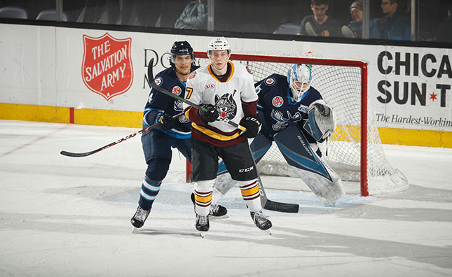 With 7:11 gone in the second period, C.J. Suess won a battle down low and found Emile Poirier racing towards the net. Poirier capitalized and notched his fourth of the season to give the Moose the 1-0 advantage. Less than two minutes later, Jimmy Oligny scored his first of the season improving Manitoba’s lead to 2-0. With four minutes remaining in the second period, Curtis McKenzie capitalized on a power play opportunity and got the Wolves within one.