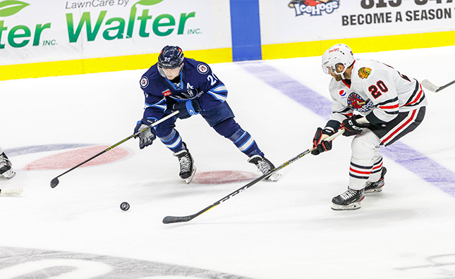 The Manitoba Moose (5-4-1-0) continued their road swing with a Sunday date against their Central Division foes, the Rockford IceHogs (3-5-0-0).