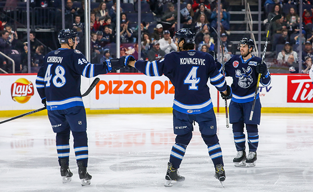 Just 1:41 into the first period, Andrei Chibisov sent a shot through traffic that was tipped in by Kristian Reichel to give Manitoba the 1-0 advantage. With less than three minutes remaining in the first frame, Gustav Olofsson tried to capitalize on a rebound near the crease however Mikhail Berdin made a highlight reel save to keep Laval off the board.